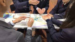 fascinate株式会社より但馬 武先生をお招きし、「社会を変えるを仕事にする」をテーマに、3つのワークショップを交えながらご講演いただきました。参加者は、NASAゲーム、マシュマロパスタチャレンジなど、チームワークの試されるワークを通してチームビルディングの在り方を学びました。最後のワークでは「学校がワクワクするような校則を考える」というテーマで発表を行い、各グループさまざまな校則を提案することができました。